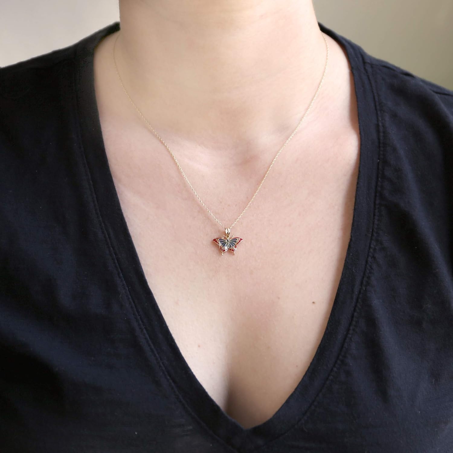 Enamel Gold Yellow 14k Large Necklace Pendant Butterfly ...