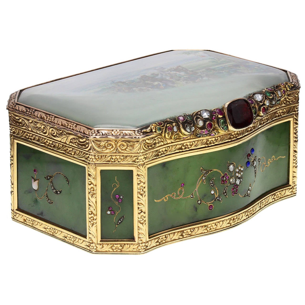 Rare and Important Nephrite Gold Box with Napoleonic ...