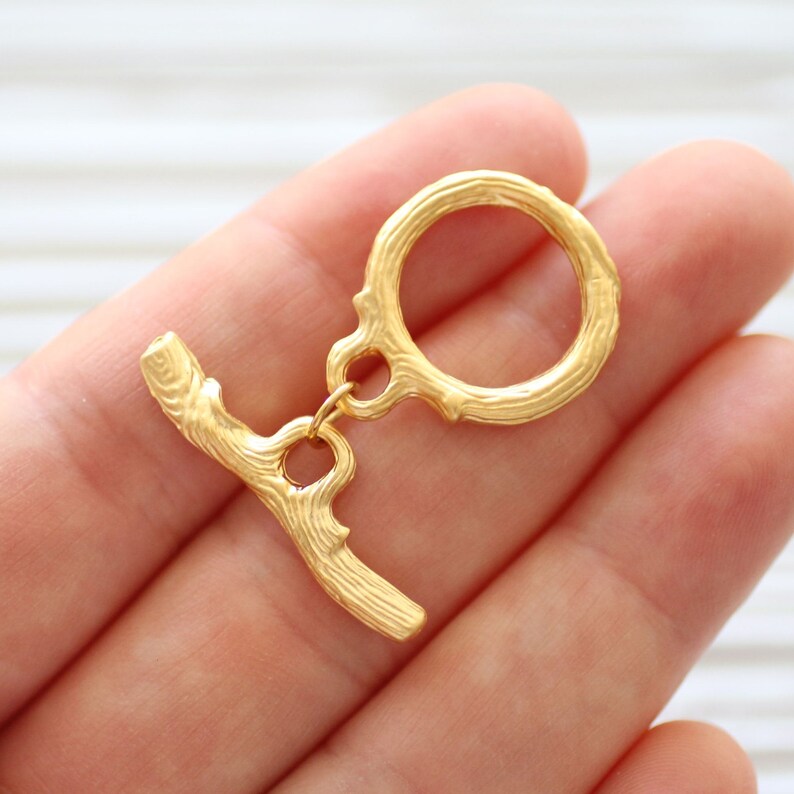Toggle clasps gold T bar ring large 24K gold plated ...