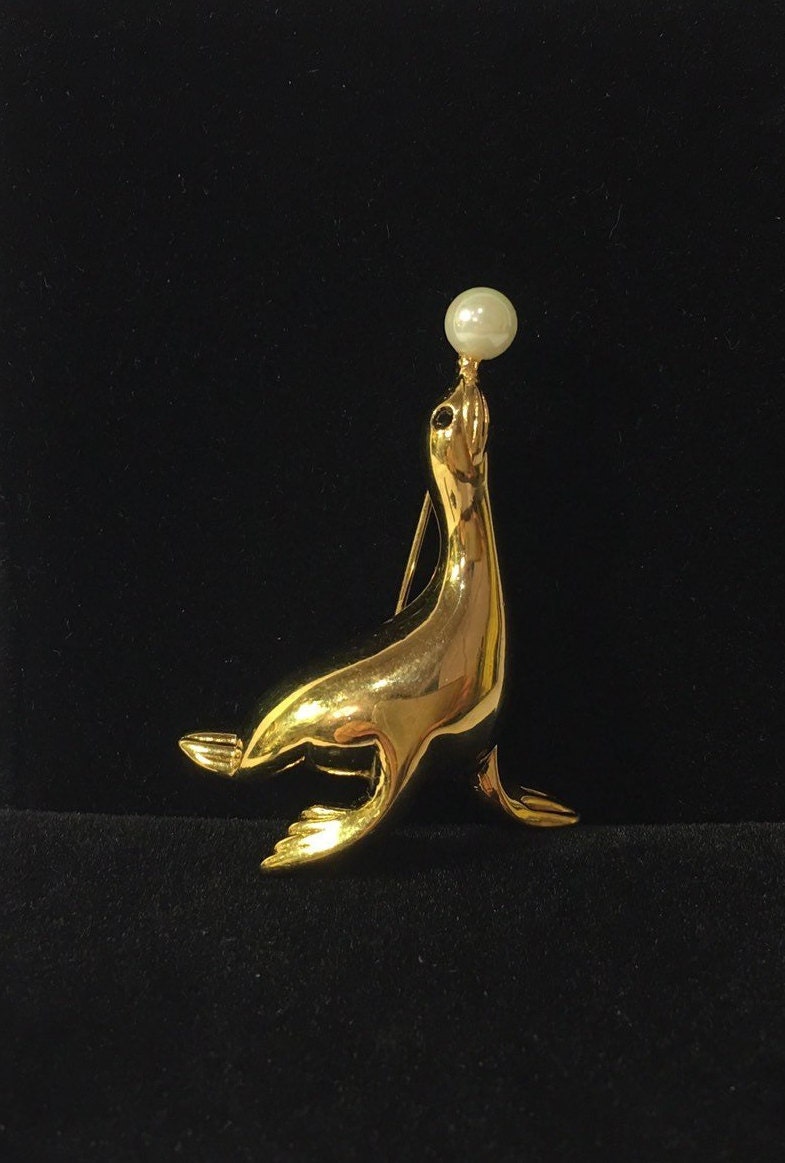 Vintage Seal Brooch, Vintage Gold Seal brooch, Seal ...