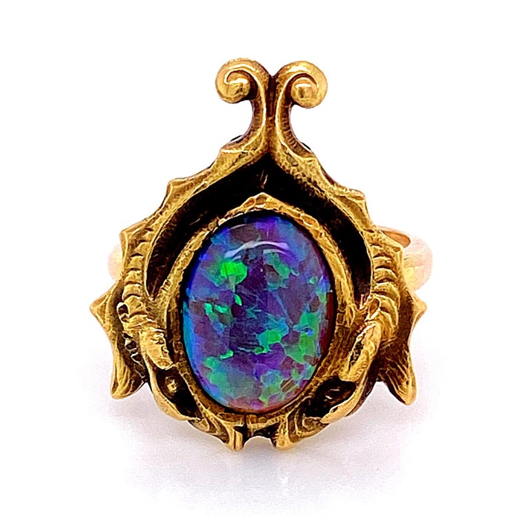 Arts and Crafts Australian Black Opal Gold Cocktail Ring ...