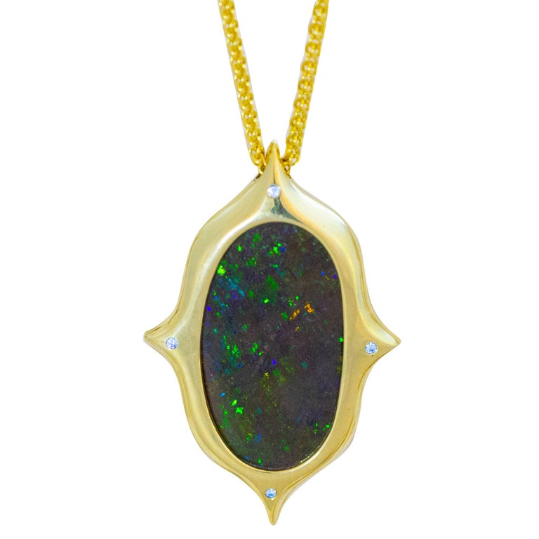 Australian Boulder Opal, Diamond and 18 Karat Gold Pendant ...