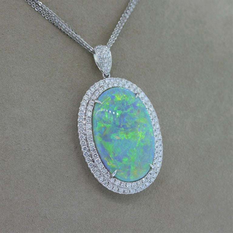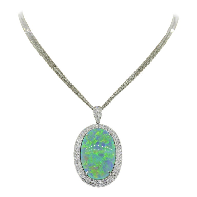 Magnificent Australian Opal Diamond Gold Pendant For Sale ...