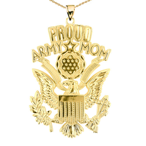 Yellow Gold Proud Army Mom Pendant Necklace
