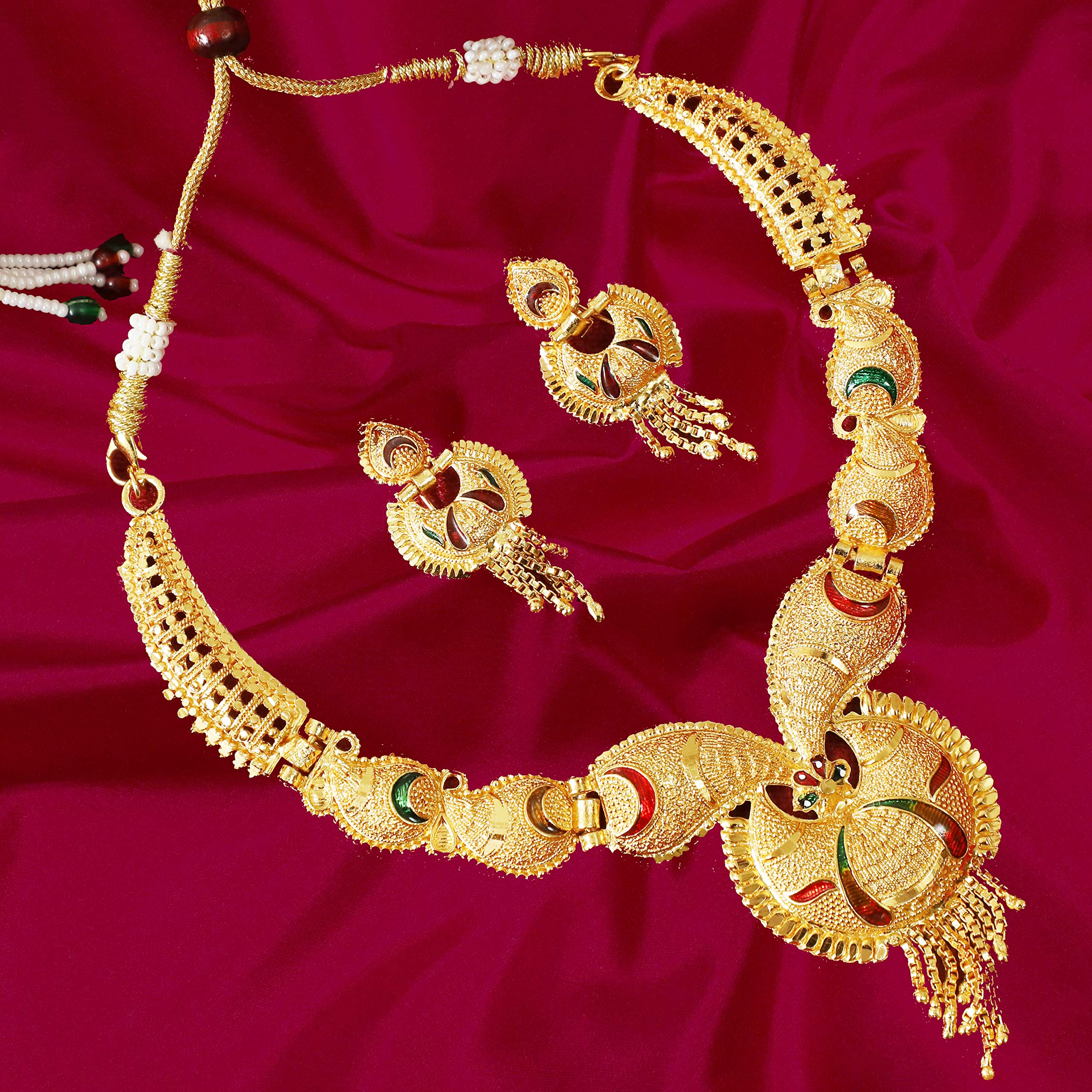 One Gram Gold Jewellery Online Shopping App. Check out innovative designs in one gram gold jewellery for women from Kalyan Jewellers. Indian Jewelry South Indian Wedding Necklace Bridal Jewellery Temple CZ One Gram Gold Ethnic Handmade Gold Plated Traditional Kemp Neck Set.