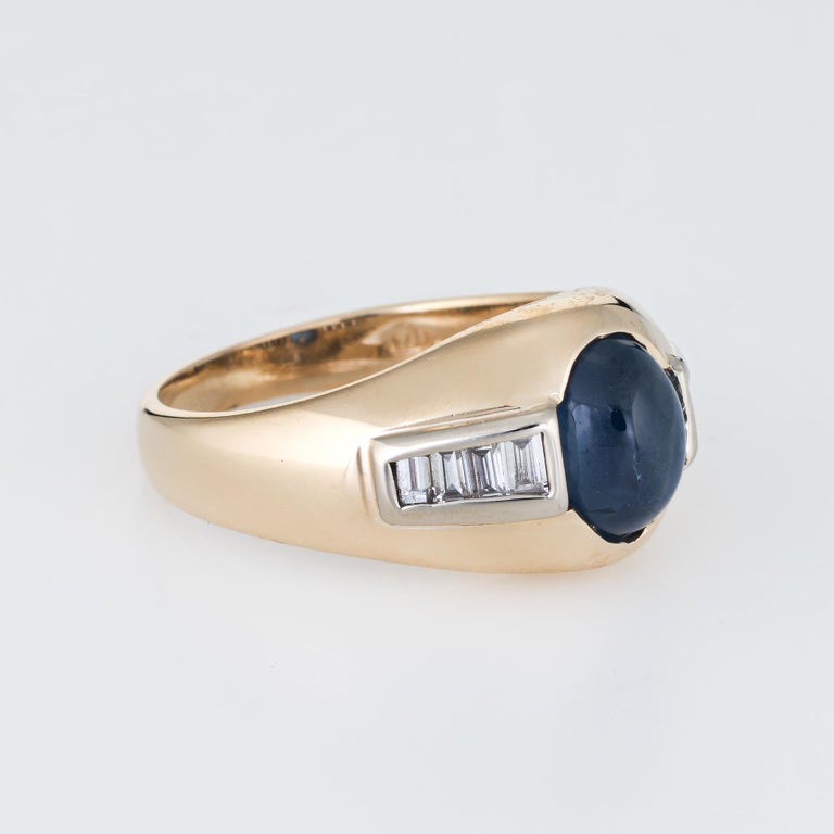 Vintage Natural Sapphire Cabochon Diamond Ring 14 Karat ...