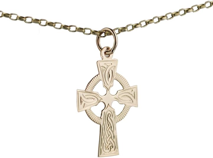 9ct Gold 23x16mm hand engraved knot pattern Celtic Cross ...