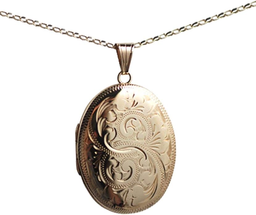 9ct Gold 35x26mm oval hand engraved Locket with a 1.4mm ...