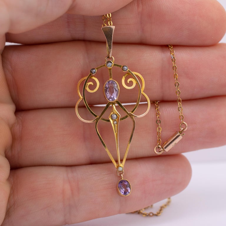 Antique Amethyst Pearl Pendant Necklace, circa 1910 For ...