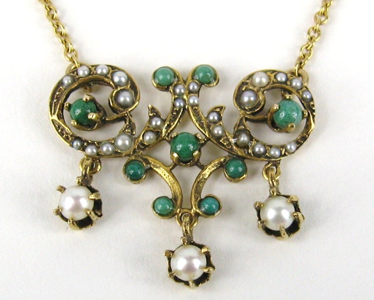 Antique Art Nouveau 14K Gold Pearl Lavalier Necklace For ...