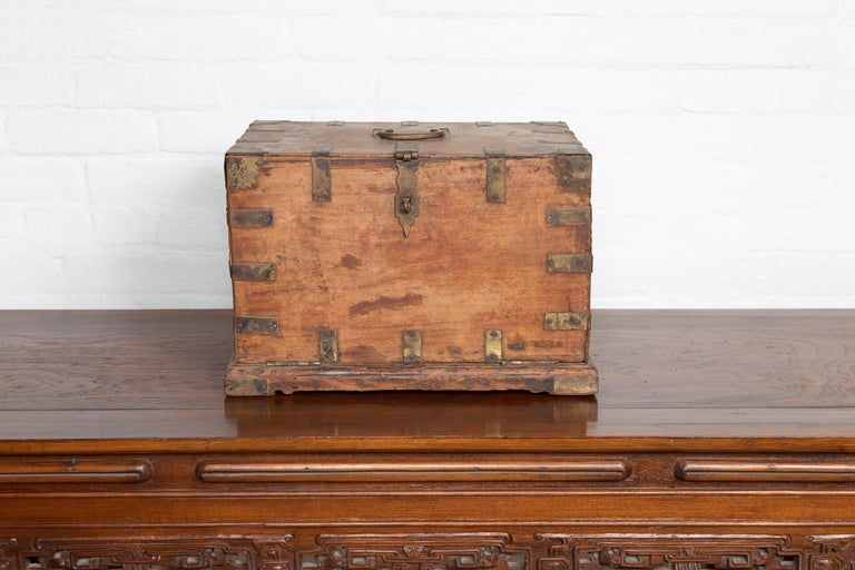 ANTIQUE BRASS BOX with Lid,Heavy solid Brass Box Solid brass India Style Antique Box, solid Brass Decorative aged box with handle and rivets.