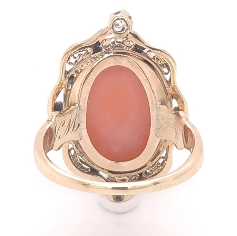 Antique Victorian Carved Coral Diamond Gold Ring Estate ...