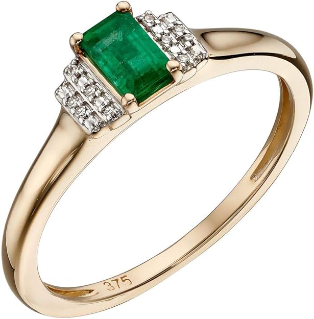 Elements 9ct Yellow Gold Solid Shank Emerald Baguette Ring ...