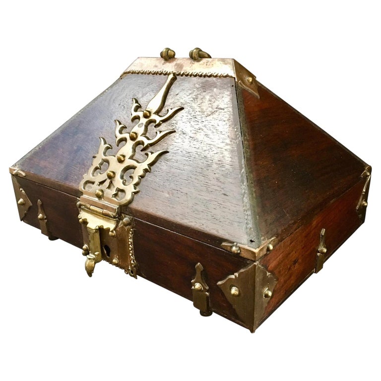 Antique Kerala Ethnic Indian Mahogany Jewelry Box with ...