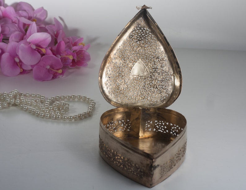 Antique Jewelry Box Keepsake Heart Shape Indian Brass Box ...