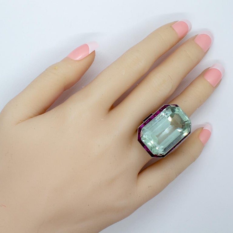 Estate Vintage Platinum Aquamarine, Ruby and Diamond Ring ...