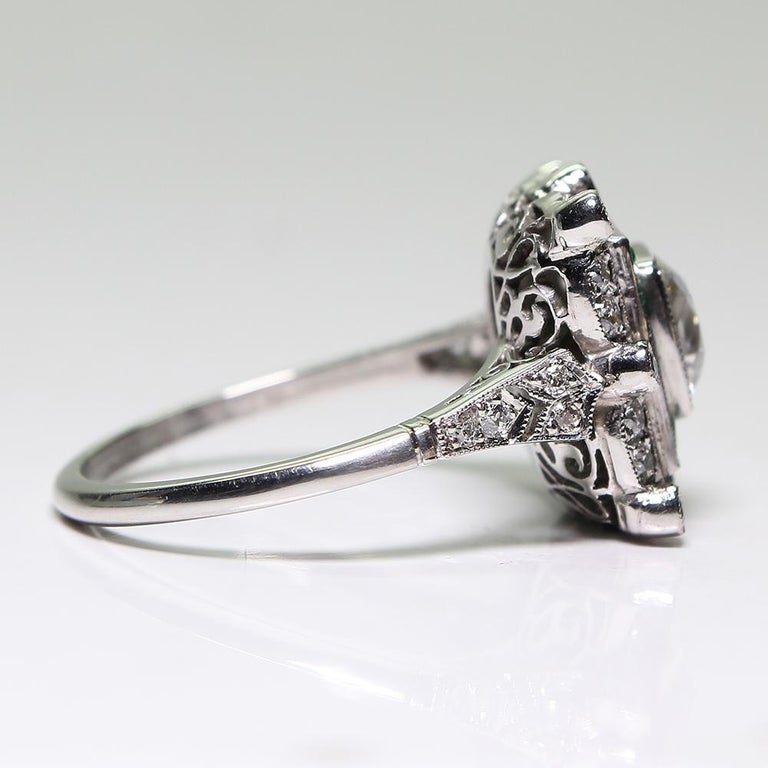 Platinum Antique Estate Diamond and Emerald Art Deco Ring ...