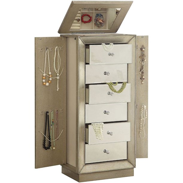 Antique Gold Jewelry Armoire. A silver and clear finish gives the. Handsomely crafted in an Antique Gold finish, composed from selected woods and veneers.