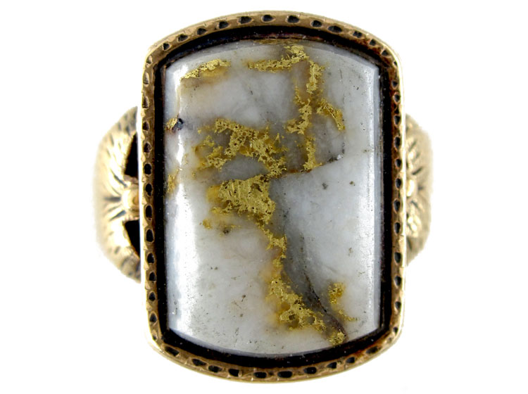 Gold Quartz Miner's Ring - The Antique Jewellery Company