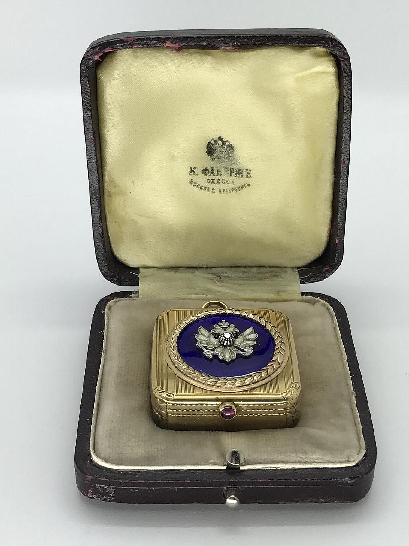 Karl Faberge 14K Gold Pill Box W/Diamond & Enamel
