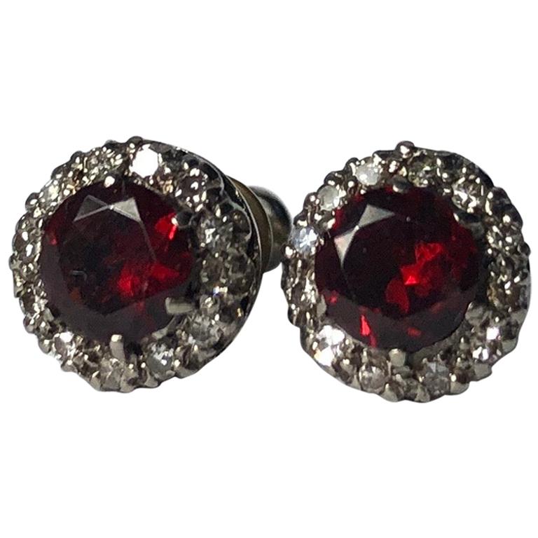Antique Garnet and Diamond 18 Carat White Gold Cluster ...