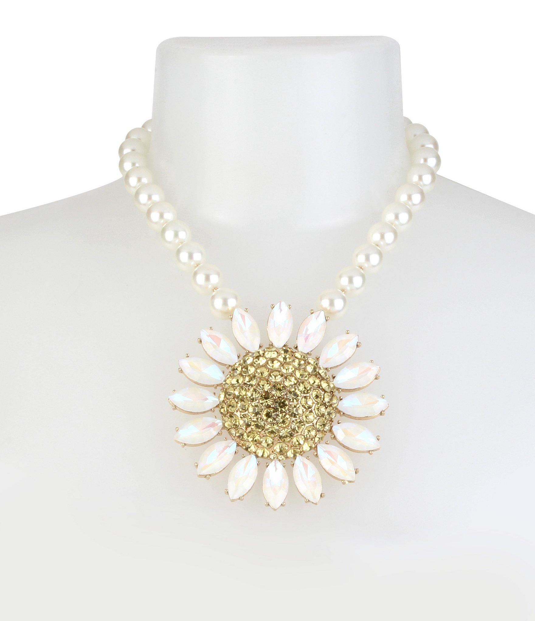 Betsey Johnson Large Pave Daisy Flower Pendant Pearl ...