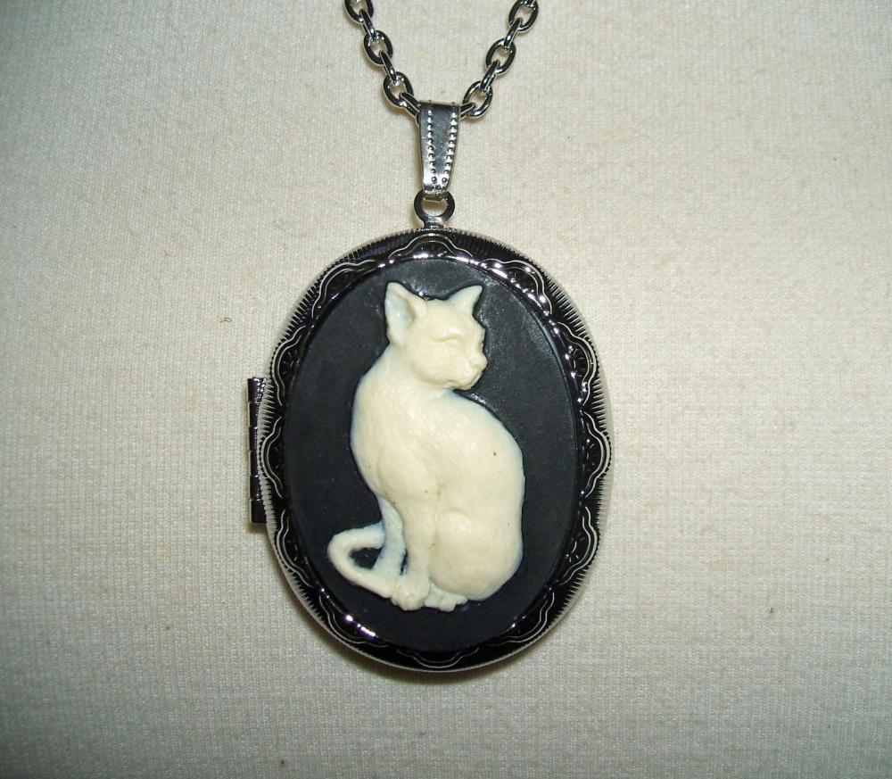 CAT CAMEO Necklace Locket Pendant Ivory Color Cat On A ...