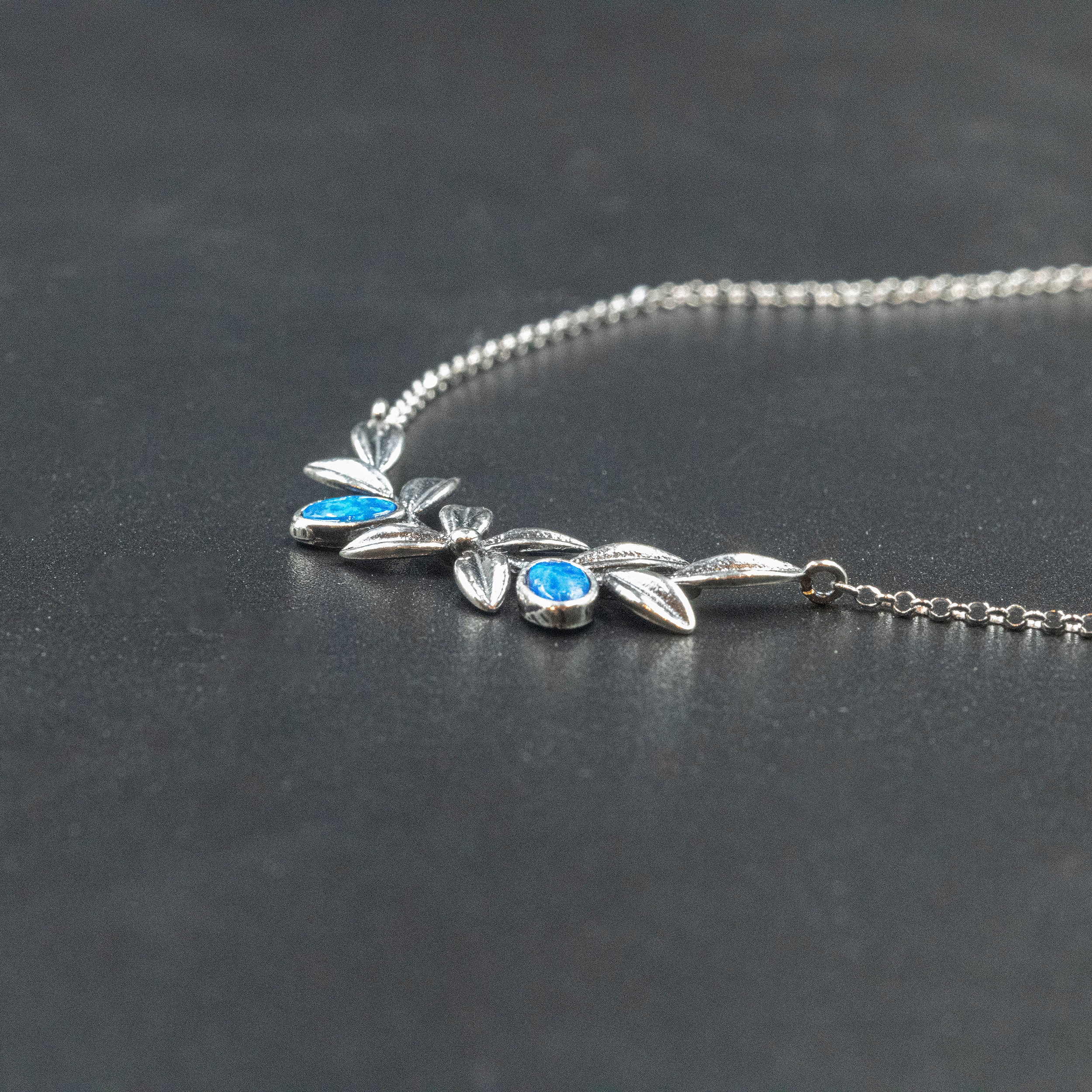 Sterling Silver and Opal Olive Leaves Necklace, Elegant ...