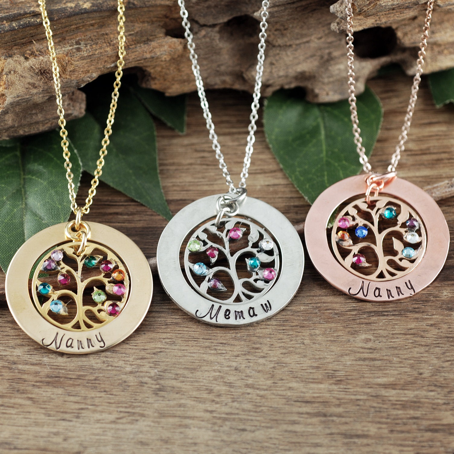 Grandmother Family Tree Birthstone Necklace, Tree of Life ...