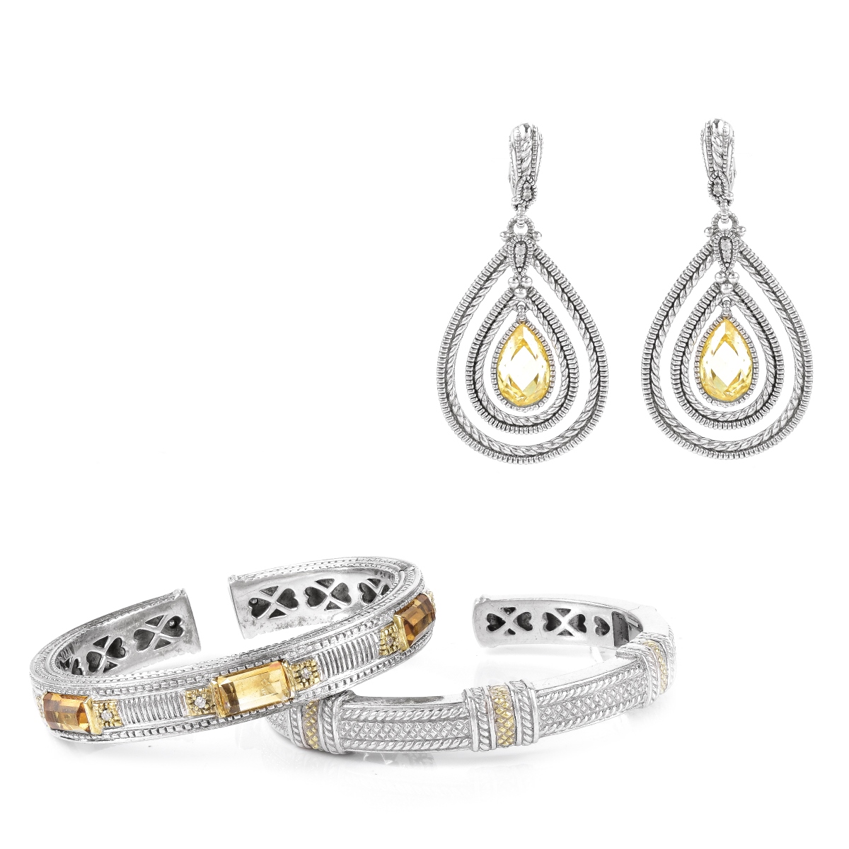 Judith Ripka Triple Baguette Drop Earrings, Canary