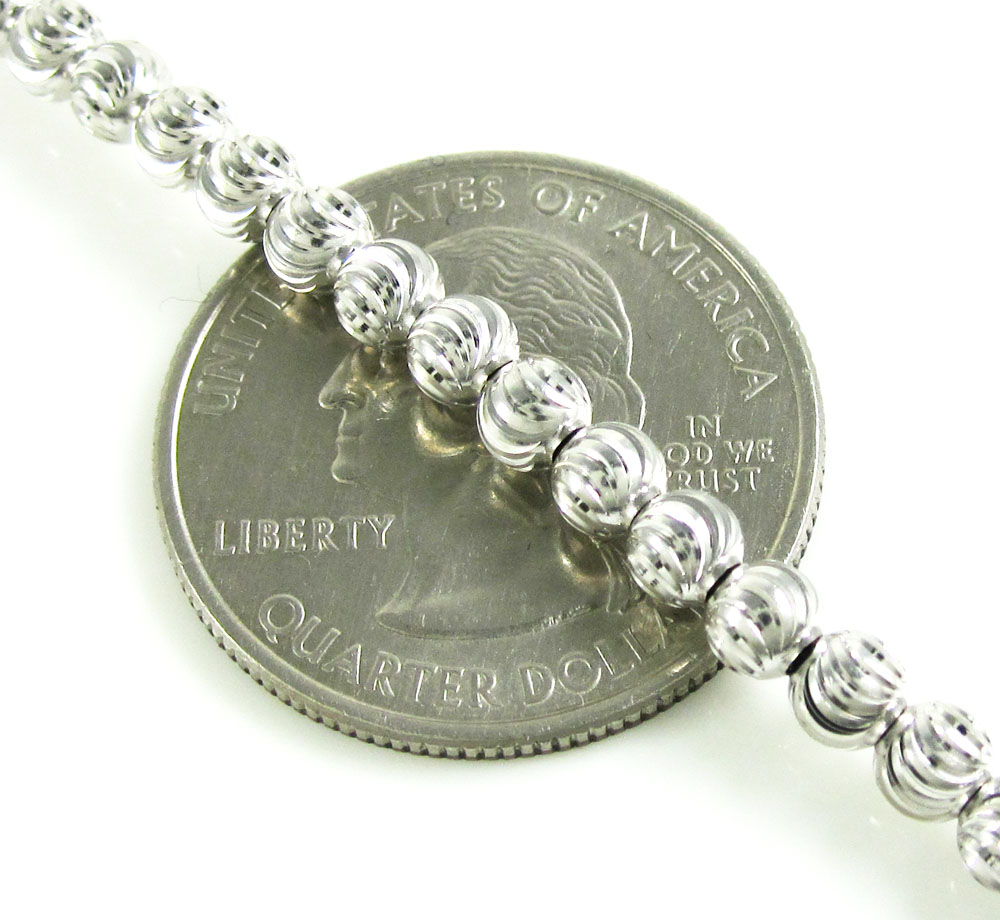14K White Gold Moon Cut Bead Chain 18-22 Inch 4mm