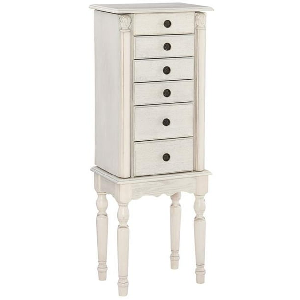 White Jewelry Armoire. The petite white finished jewelry armoire is accented with beautiful clear faceted drawer pulls and parsons-style curved legs. Wall Mounted Jewelry and Accessory Storage Rack, Antique White.
