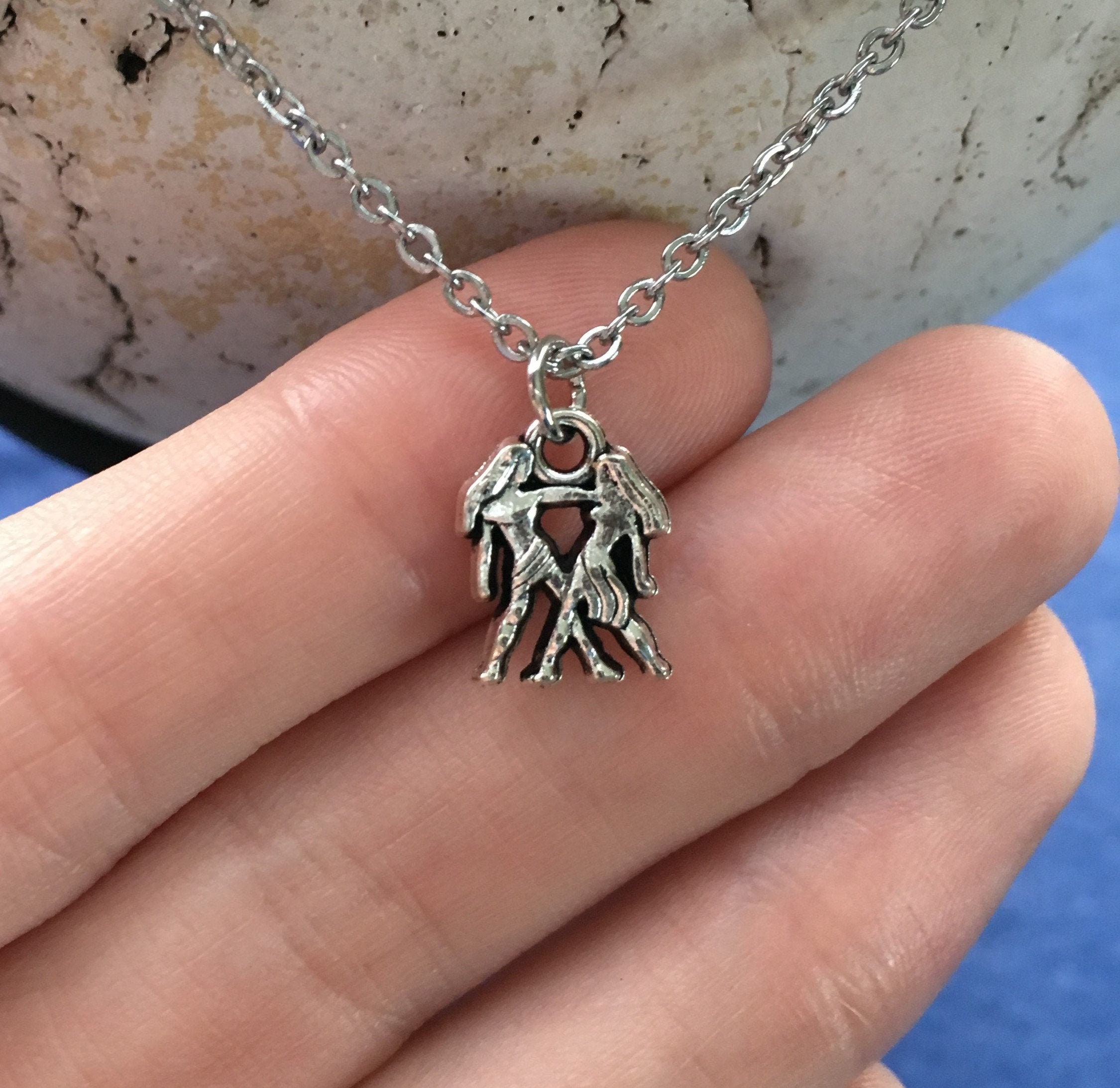 Gemini Zodiac Necklace on Stainless Steel Cable Chain ...