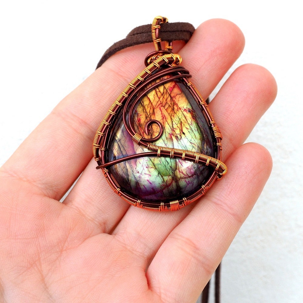 Labradorite Jewelry. It is a power gemstone that allows you to see through illusions to determine the actual tangible form of your dreams and goals. You will usually find it in purple, blue, or green, with hints of white, gray, pale orange, or red, hidden in the stone.