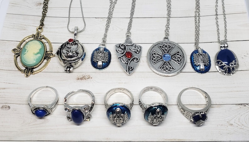 The Vampire Diaries Jewelry, You Choose Item (s) Available (From Left to Right): Katherine Cameo Necklace Elena Gilbert Vervain Locket (Back is magnet to hold vervain) Stefan "S" Initial Necklace Bonnie Bennett Necklace Galen Vampire Hunter Necklace Damon "D" Initial Necklace Katherine Pierce Daylight Necklace Klaus Mikaelson Ring Elena/ Katherine Daylight Ring Damon "D" Initial Ring Stefan "S. Cleo inspired Leonardo DaVinci to create the artifact and she imbued it with magic to seal away and shield her from Malivore until it could be opened by the one capable of killing Malivore; Hope Mikaelson. You can take t-shirts, hoodies, coats or pictures, stickers, etc., anything you can think of.