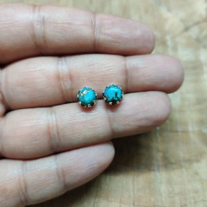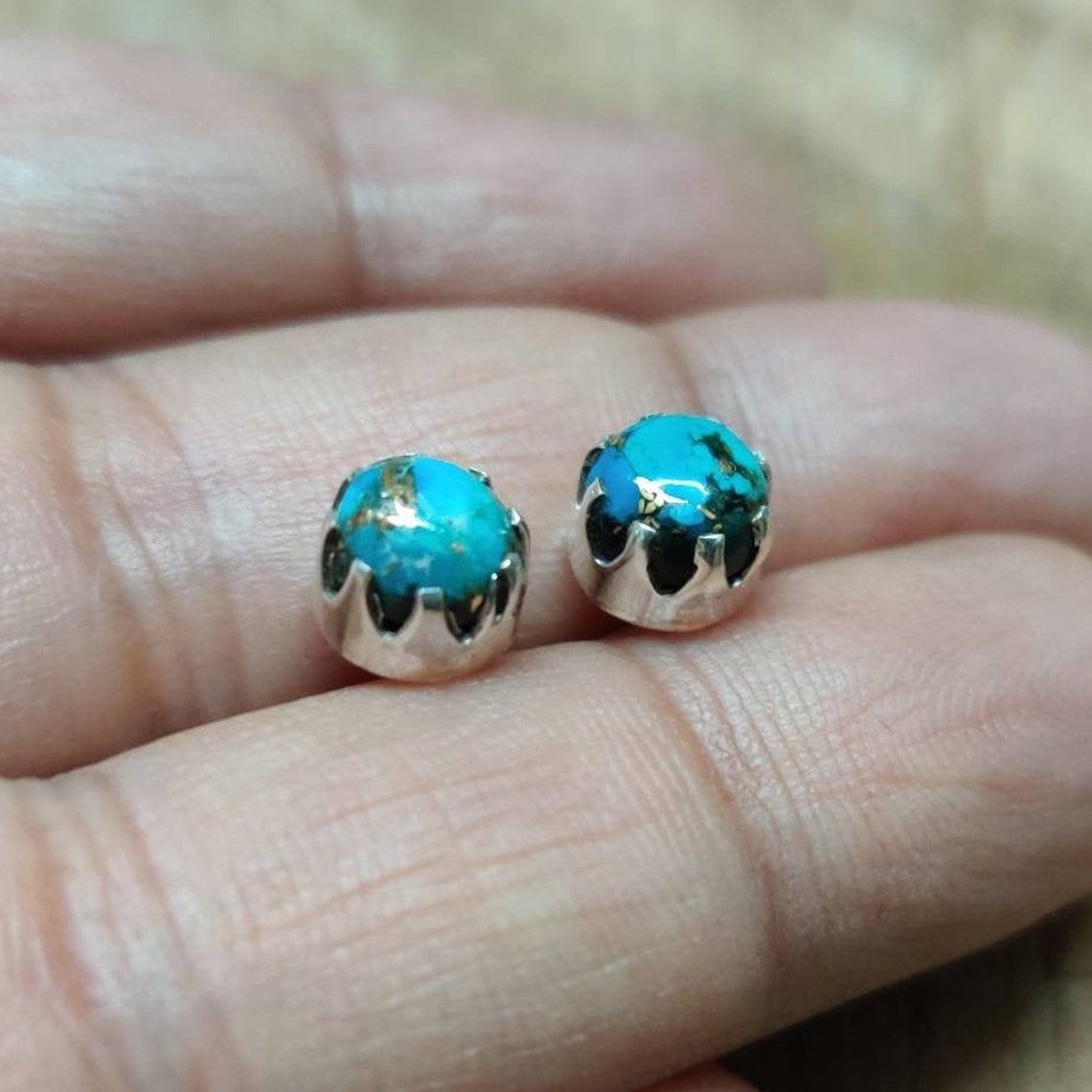 Logo engraved on inside of the band to authenticate originality. Blue Copper Turquoise Crown Stud Earrings in Sterling Silver Rings hand hammered & set with rare stones. I wear mine as a stack ring, and it forms the perfect frame.