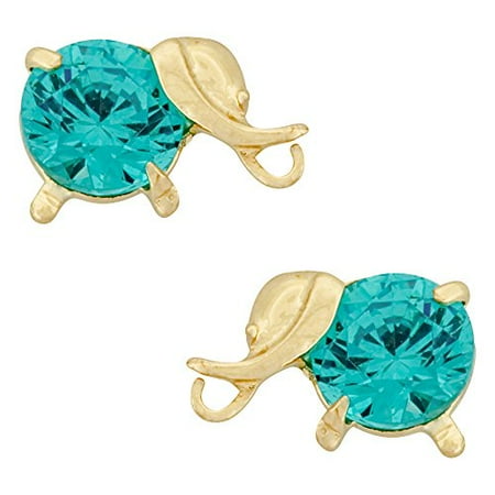 BMD - 14K Yellow Gold CZ Birthstone Elephant Stud Kids Earrings With ...