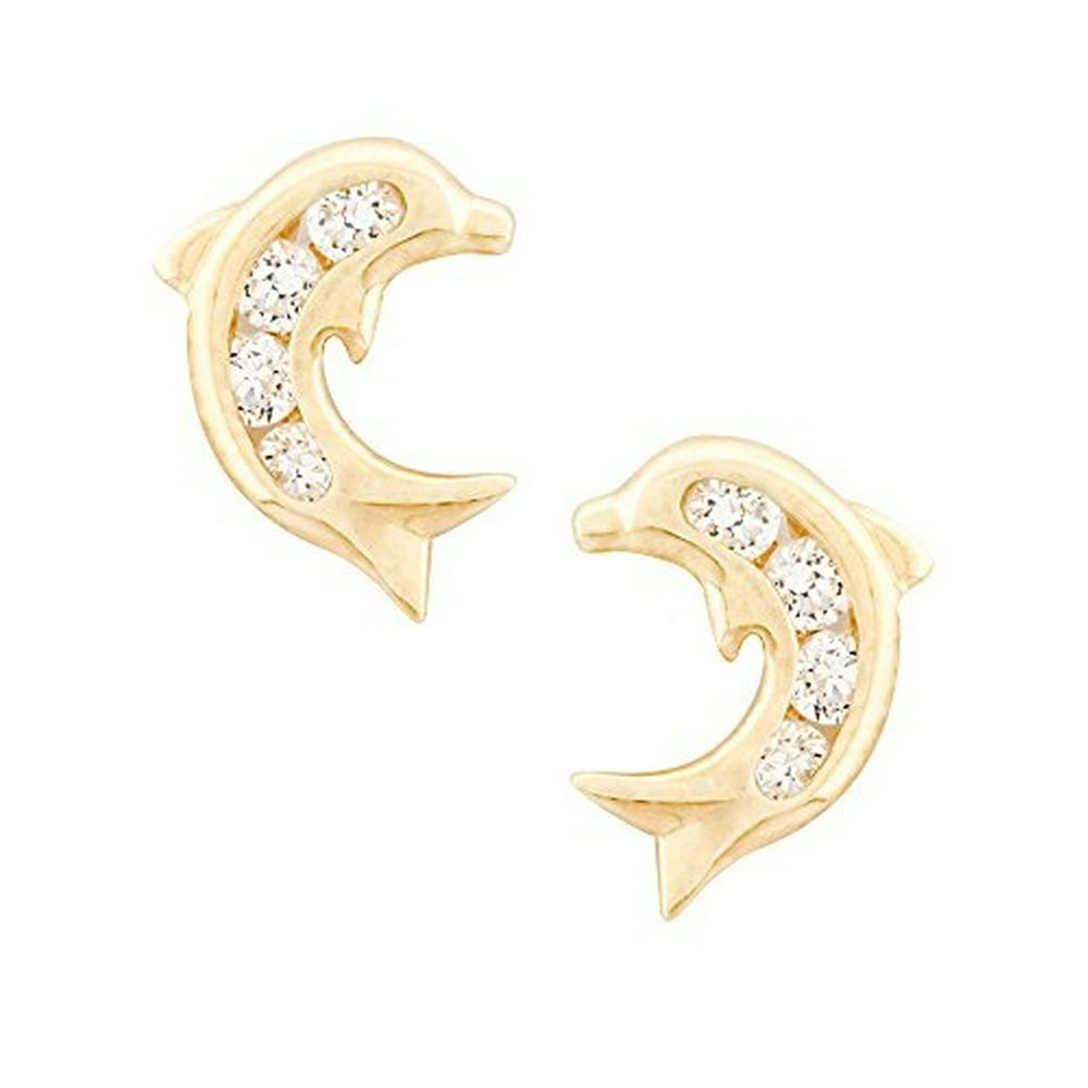BMD - 14K Yellow Gold Dolphin Stud Kids Earrings With Safety Screw ...
