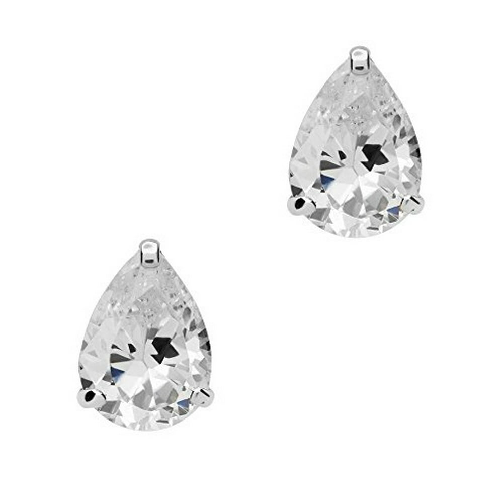 BMD - 14K White Gold Basket Set Pear-Shaped CZ Cubic-Zirconia Solitaire ...
