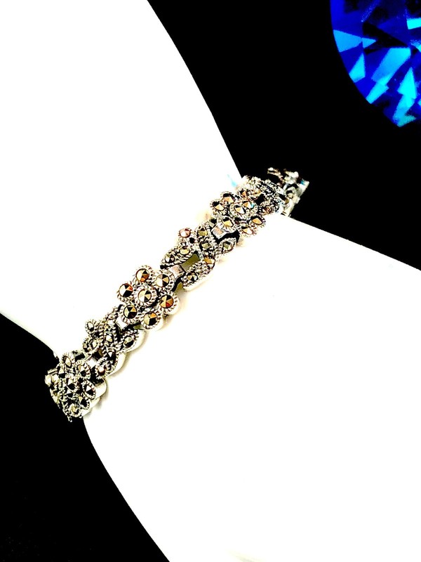 You may notice the following metal stamps or markings on your jewelry: Marking. Description: Contemporary Thai CFJ sterling silver flower cuff bracelet, a contemporary design with an enormous flower on a narrow sterling band. Jewelry can be made from a variety of metals, including gold, silver, and platinum.