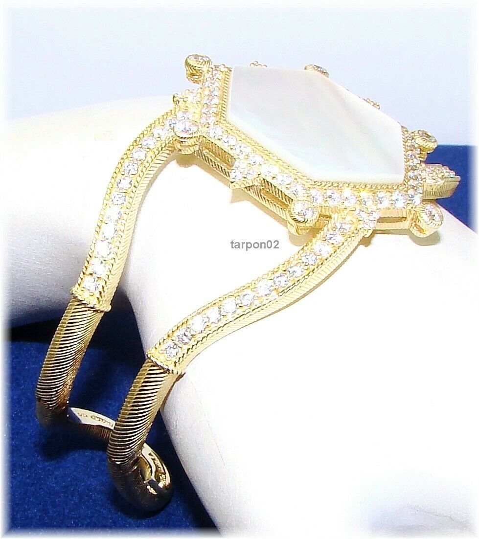 JUDITH RIPKA 14K YELLOW GOLD CLAD DIAMONIQUE CURB LINK CUFF BRACELET S ...