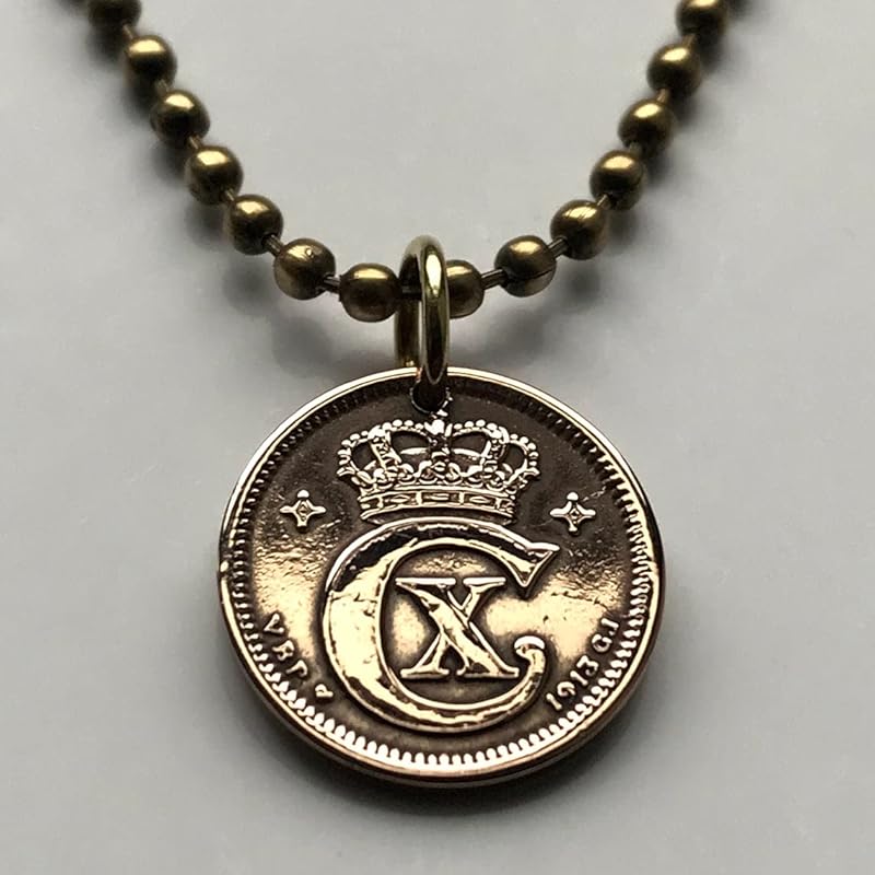 Amazon.com: 1913 Denmark 1 Ore coin pendant Danish crown initial C ...